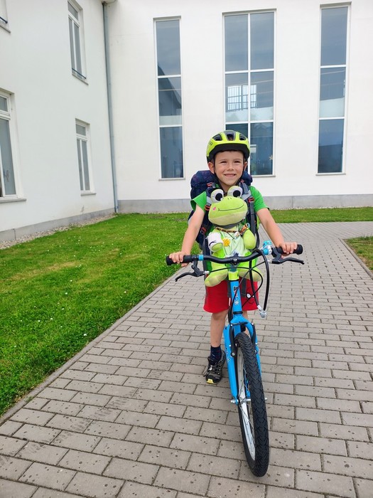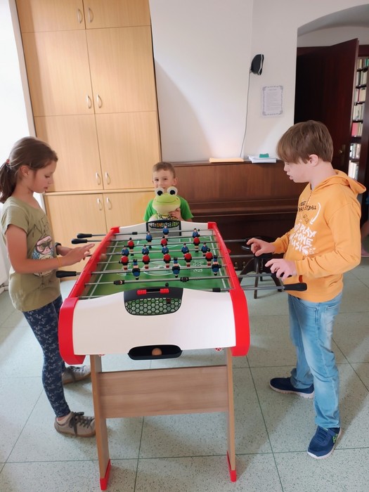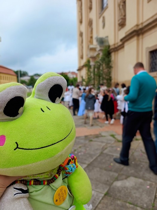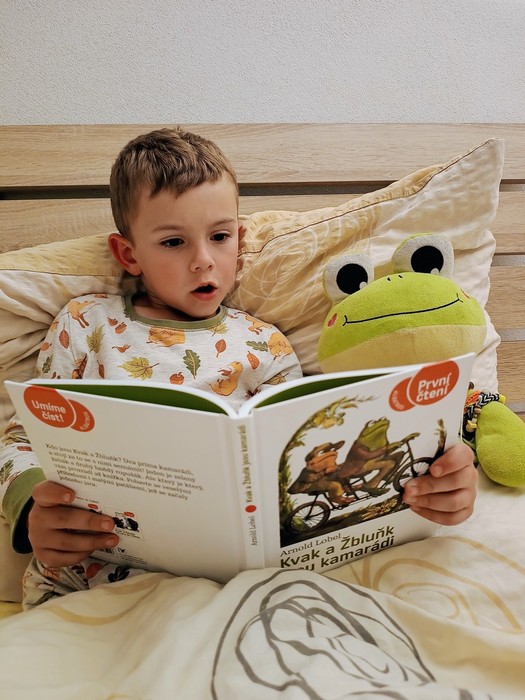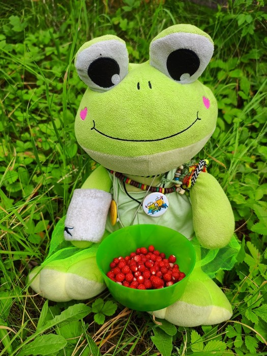 Uplynulý víkend strávila žabka Evelínka u paní psycholožky. Nejdřív se skamarádila s jejím starším synem Kryštofem, který se Evelínky hned ujal a vzal ji na koloběžce do školky, kde vyzvedli mladšího bráchu Jonáše. Po malé přeháňce vysvitlo sluníčko, tak jsme se společně vydali na lesní jahody, kterých jsme nasbírali nakonec plnou misku. Kromě lesních jahůdek jsme si posbírali jahody na zahrádce, taky pár třešní, angrešty a ředkvičky. Potom jsme Evelínku naučili hrát stolní fotbálek na faře, byli jsme společně na májové a dětské mši v bazilice. Večer v posteli přečetl Kryšty žabce Evelínce na dobrou noc kapitolu z knížky „Kvak a Žbluňk jsou kamarádi“, což se Evelínce moc líbilo, protože hlavními hrdiny jsou dva sympatičtí obojživelníci - žabák a ropušák.