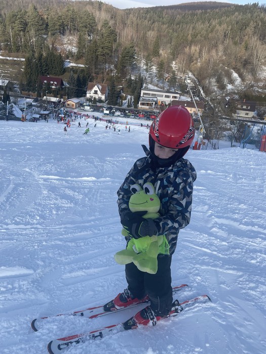 Evelínka má za sebou víkend plný sportovních zážitků. Poprvé vyrazila na lyžařský svah. Lukášek ji tak seznámil s novým sportem. I když žáby chladné počasí nemají v oblibě a raději zalezou do tepla, pro Evelínku to byl zážitek. Také se seznámila s rolbou a prozkoumala, jak takový složitý stroj vypadá a k čemu se využívá.