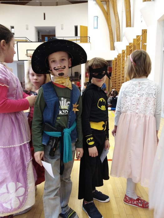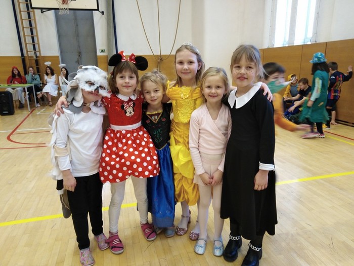 Členové žákovského parlamentu připravili pro žáky 1.-3. třídy a předškoláky z MŠ karnevalový rej. Na děti čekalo sedm stanovišť, kde děti plnily nejrůznější úkoly. Masky byly pestré a tak bylo na co se dívat.