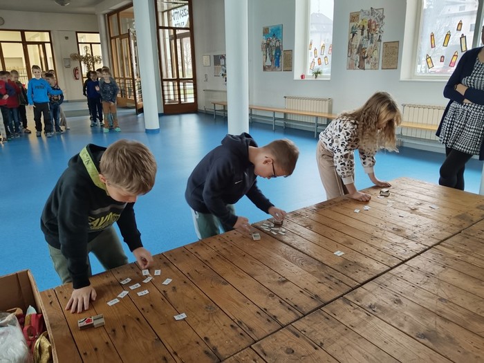 Třeťáci jsou ve finále s násobilkami. Sami si mohli prostřednictvím skládání matematických smyček ověřit, zda je zvládnou také rychle. Využili vstupní halu školy, kde je dostatek prostoru pro tři soutěžní družstva.