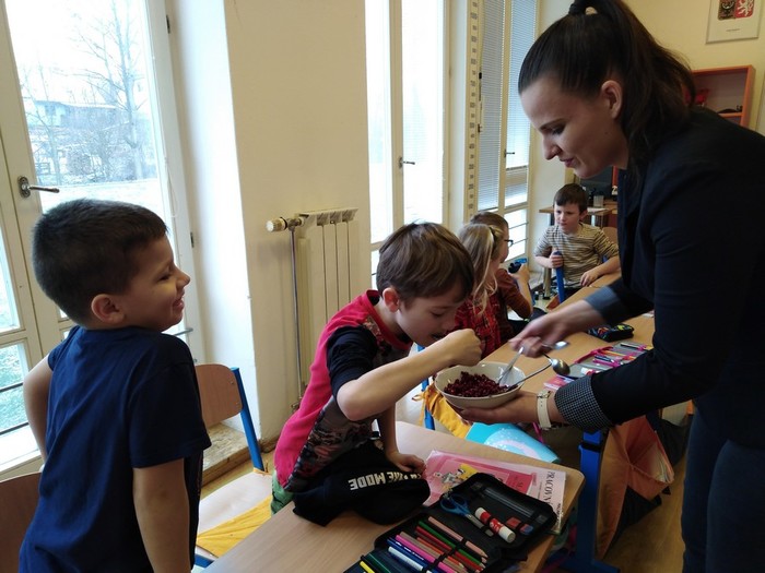 Velehradská škola je zařazena do projektu Ovoce a mléko do škol. Kromě standardních dodávek v průběhu roku se děti nyní dočkaly oblíbené ochutnávky exotických plodů. Nejprve se prostřednictvím videa seznámily s druhy ovoce, které bylo ochutnávce zařazeno a dozvěděly se nejrůznější zajímavosti. Například odkud pochází, jak se sklízí a konzumuje, čím je zdraví prospěšné, ale také recept k jejich využití. Pak už následovala samotná ochutnávka. I když se všechny děti neodvážily ochutnat vše, každý si našel alespoň něco. Snad nejvíce všem chutnalo mango.