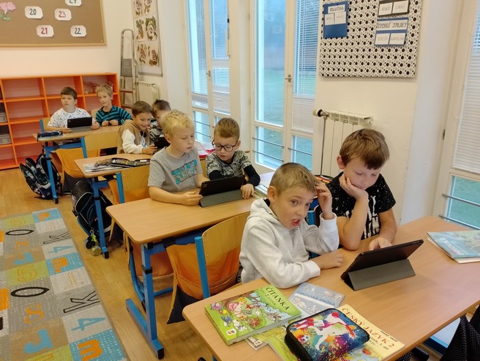 Ve čtvrtek jsme si opět půjčili iPady a plnili úkoly zaměřené na porozumění textu. V matematice jsme v LearningApps plnili kolekci příkladů, dostihových závodů, puzzlíků a slovních úloh. Nechyběly ani naše oblíbené autobusy. V tělocviku jsme spojili pohyb s matematikou a hráli hru na vlaky. Jednotlivé vagónky za sebou museli seřadit příklady. Hra nás nadchla natolik, že jsme s ní nechtěli přestat. Den jsme zakončili vtipnými básničkami o autech konkrétních značek, ke kterým jsme připojovali jejich loga.