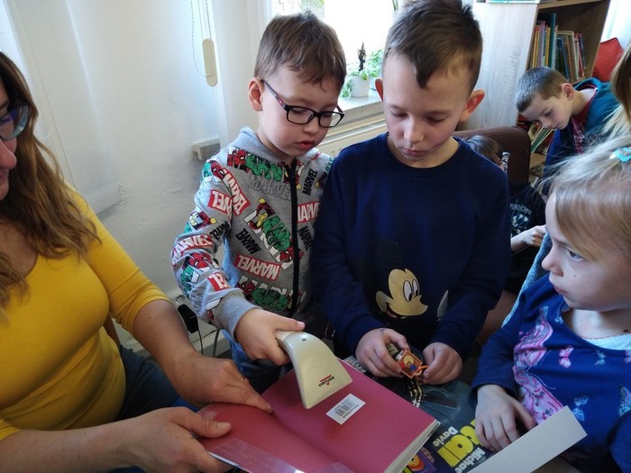 Prvňáci už navštívili knihovnu na Modré a dnes si prohlédli také knihovnu na Velehradě. Paní knihovnice Veronika Mergentalová pro ně připravila zajímavé úkoly. Nejprve se seznámili se systémem řazení knih, dále si vyzkoušeli, jak důležité je znát a umět používat abecedu v praxi. Ani netušili, kolik váží plná bedna knih a jak je náročné je seřadit správně do police. Nyní už také všichni naši budoucí čtenáři ví, že některé knihovny mají systém výpůjček a vracení knih v elektronické podobě a používají čtečku čárových kódů, podobně jako obchodech. Mnozí z nich objevili zajímavé tituly, které si vypůjčili domů nebo si je nechali doložené.