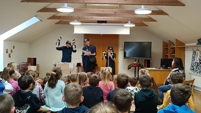V pondělí 12. 2. do naší školy, jako již tradičně, zavítali herci David Vacke, Irena Vacková a Jiří Hejcman a předvedli dětem něco ze svého umění. Tentokrát si pro naše druháčky připravili Pošťáckou pohádku z knihy Devatero pohádek od Karla Čapka.