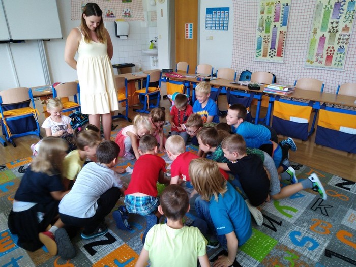 U nás, prváčků, je neustále rušno. Snažíme se o vzájemnou spolupráci, učíme se pracovat ve dvojicích i skupinách a zvykáme si na nová pravidla, abychom se vzájemně nerušili.
