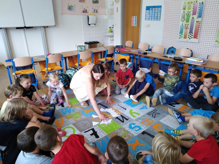 U nás, prváčků, je neustále rušno. Snažíme se o vzájemnou spolupráci, učíme se pracovat ve dvojicích i skupinách a zvykáme si na nová pravidla, abychom se vzájemně nerušili.