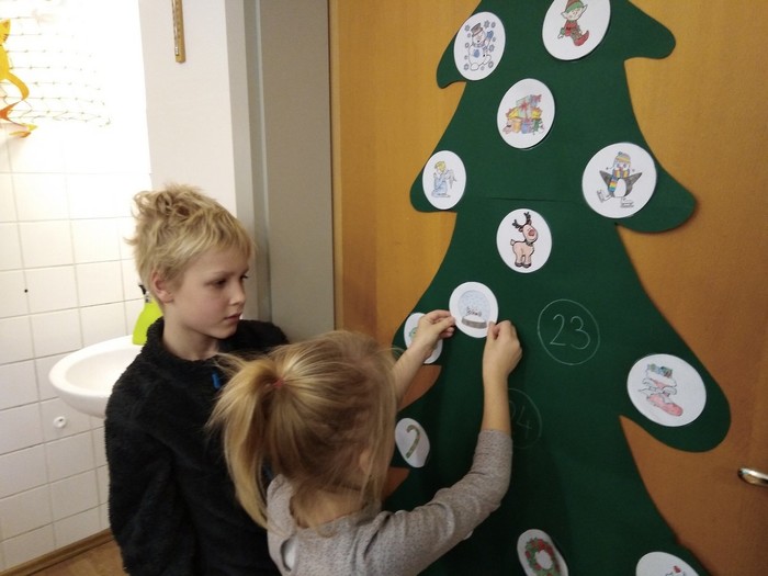ve třídě vládla dobrá nálada a pohoda. Děti si zahrály oblíbené hry, poslechly si zajímavosti o adventu, nalepily poslední obrázky do adventního kalendáře a pak prostřednictvím videohovoru pozdravily druhou paní učitelku, která je také nemocná. Popřály jí hodně zdraví, spokojenosti a mnoho pěkných dárečků.
