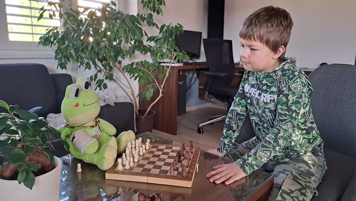 Následující den ráno na ně čekala pestrá snídaně a pak hurá za dalšími zážitky. Martinův starší bratr navštěvuje šachový kroužek a mnoho svých zkušeností pak předává Martinovi. Ten neváhal a snažil se do tajů této královské hry zasvětit i Evelínku.