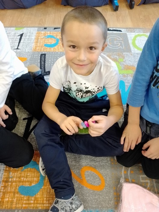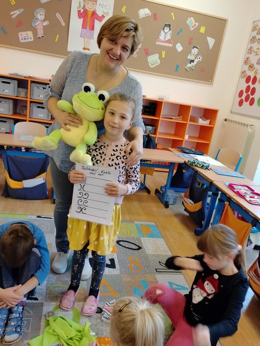 Náš třídní maskot, žabka Evelínka, má za sebou první víkendovou návštěvu v rodině naší Viktorky. O tom, kam se žabka podívá, rozhodl spravedlivě los. O Evelínku bylo vzorně postaráno a užila si také veletrh rukodělných řemesel pro děti ve Zlíně. Viktorčina maminka má dvě zaměstnání. Jedním z nich je modeláž nehtů. Přesto, že se jedná spíše o povolání, o které se zajímají spíše děvčata, Viktorka bravurně popsala, co maminčina práce obnáší, přinesla ukázat spousty zajímavých pomůcek, které jsou k výkonu této práce potřebné, a tak se jí podařilo zaujmout i kluky. Paní učitelky jí (dobrovolně) figurovaly při ukázce zábalu rukou, která byla neuvěřitelně příjemná a děti pak zkoumaly, jak jsou ruce po této proceduře heboučké. Pro děti si Viktorka připravila pracovní list, kde si děti mohou vyzkoušet kresby, kterými se nehty dají ozdobit. Děkujeme za překvapení a těšíme se na další zajímavé povolání.