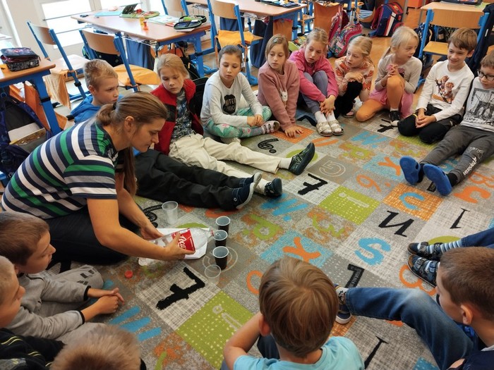 Třeťáci si dnes užili program s názvem Voda pro život, se kterým nás navštívila zaměstnankyně CEV Trnka v Uherském Hradišti. Je k nevíře, kolik informací o vodě dokázali třeťáci společnými silami dát dohormady. Od skupenství a podob, ve kterých se voda v přírodě ukrývá až po rostliny a živočichy, kteří vodu ke svému životu nezbytně potřebují. Díky drobným pokusům si k dosavadním znalostem přidali i několik nových.
