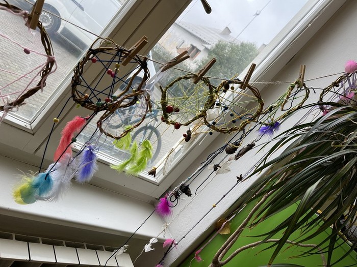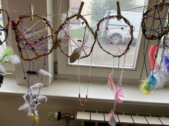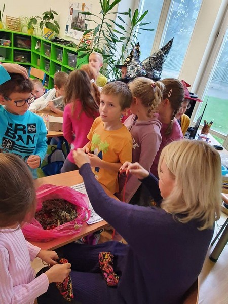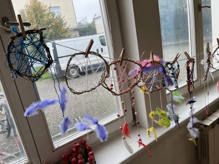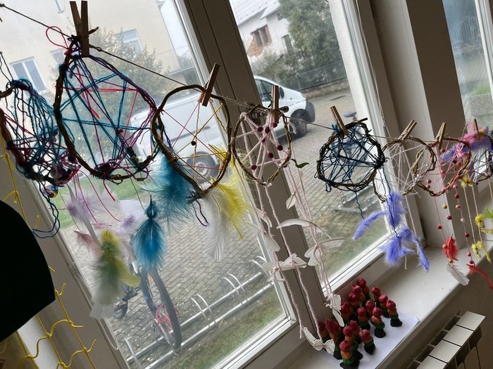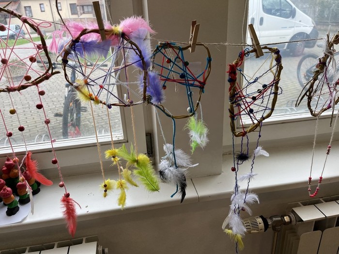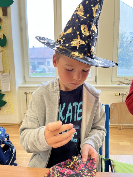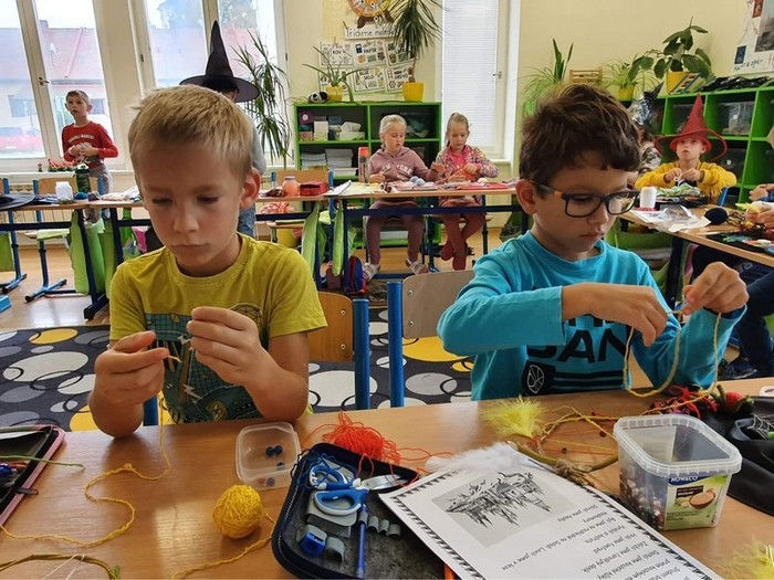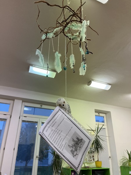 Sova Hedvika nám ráno přichystala překvapení - přiletěla s výtisky Denního věštce, kterého jsme si dychtivě přečetli a vyluštili křížovku. Na tabletech jsme s Harrym Potterem četli i počítali. Z bylinek, které jsme si před pár týdny nasbírali na Salaši, jsme si vytvořili vlastnoručně ušité bylinkové pytlíčky pro krásné sny a proti nočním můrám nás budou chránit i velmi podařené lapače snů.