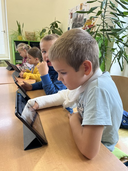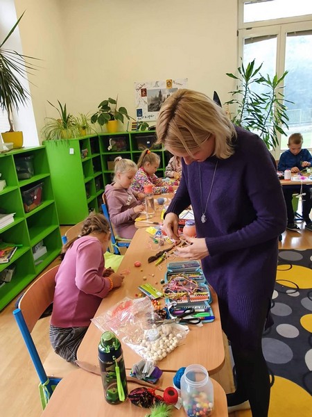 Sova Hedvika nám ráno přichystala překvapení - přiletěla s výtisky Denního věštce, kterého jsme si dychtivě přečetli a vyluštili křížovku. Na tabletech jsme s Harrym Potterem četli i počítali. Z bylinek, které jsme si před pár týdny nasbírali na Salaši, jsme si vytvořili vlastnoručně ušité bylinkové pytlíčky pro krásné sny a proti nočním můrám nás budou chránit i velmi podařené lapače snů.