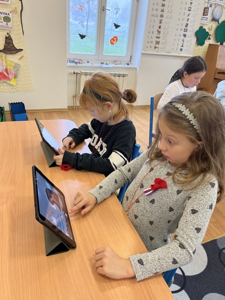 Dnes jsme plnili úkoly se svými kolejemi na stanovištích ve třídě. Na stanovišti U křišťálové koule jsme nakupovali čarodějnou výbavu, na stanovišti U Hermiony jsme řešili kvíz, S Harrym si procvičili antonyma a psaní vět, s Hermionou čarodějnou abecedu, luštili křížovku... Pracovali jsme také na I padech. Odměna za práci byla skvostná, kouzelný amulet, který nás ochrání před vším zlým :-).