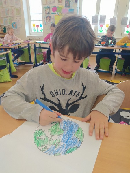 Rozhodli jsme se na to jít osvětově a vypracovali Eko noviny do každé rodiny, kde jsme se naučili spoustu nového a naučíme to doma i naše rodiny. Také jsme soutěžili v družstvech ve třídění odpadu a zhlédli poutavý díl seriálu Byla jednou jedna Země, který se věnoval problému nedostatku pitné vody na Zemi a jeho řešení. Zpívali jsme taky Chválím Tě, Země má, stejně jako asi většina dětí v naší republice. A pak jsme vyrazili uklízet kousek té naší jediné planety.