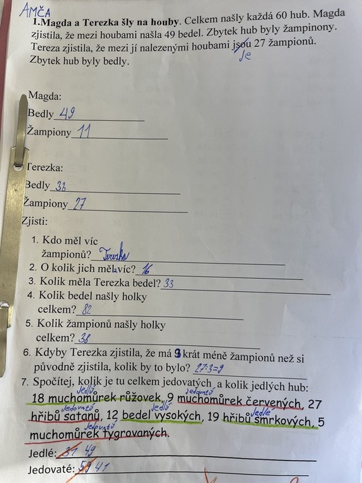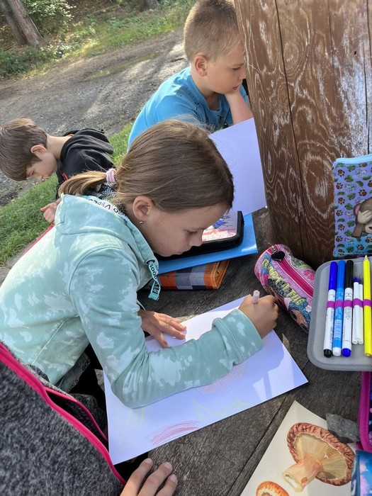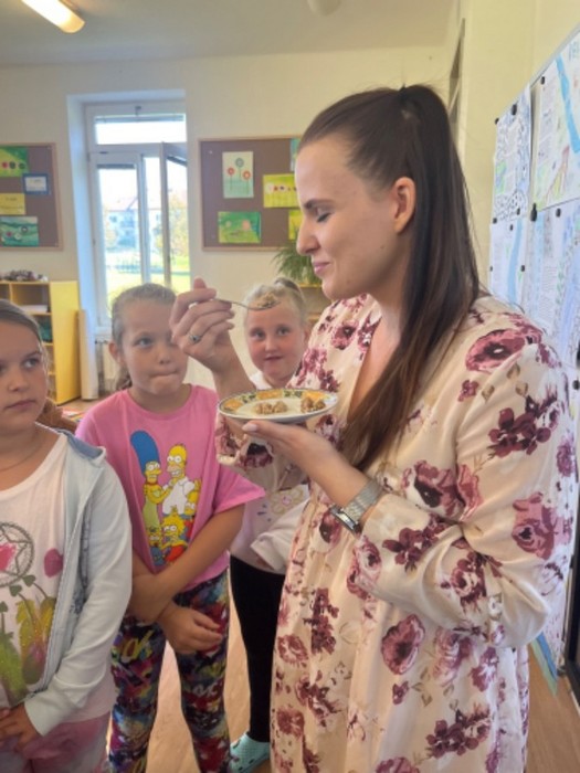 Začali jsme zhlédnutím výstavy hub na Salaši. Zbytek týdne jsme ve všech předmětech hravými učebními metodami a aktivitami pracovali na tématu houby. Týden jsme završili soutěží Masterchef Junior v souboji o nejlepšího kubu, tradiční houbový pokrm. Zvítězila skupina kluků s názvem Hřib satan.
