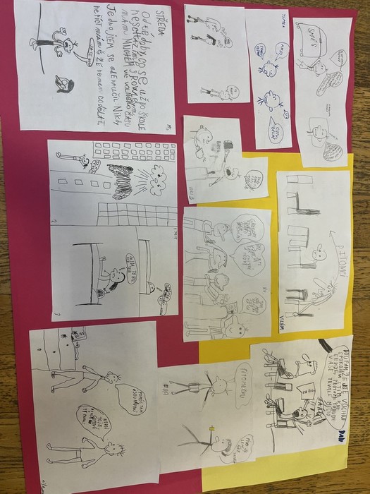 Na přání dětí se knihou října staly příběhy Malého Poseroutky. Deníky jsme četli, vyprávěli si o nich, zkoušeli napodobovat jejich humorný styl, kreslili a psali...