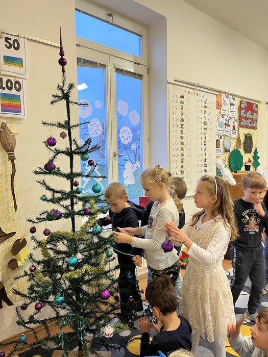 Ozdobili jsme si třídní vánoční stromeček. Hodně jsme dnes zpívali.