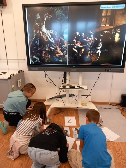 V první hodině pracovali páťáci na stanovištích a zjišťovali hlavní znaky baroka - seznámili se tak s barokní architekturou, uměním i hudbou. Na přiložených fotografiích barokních soch, obrazů a staveb hledali společné znaky a při poslechu Vivaldiho Čtvero ročních období přemýšleli, jak na ně barokní hudba působí.