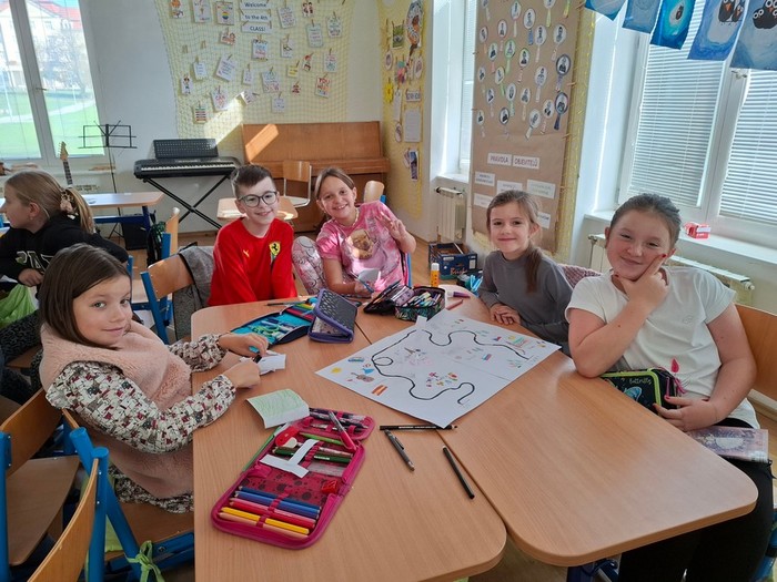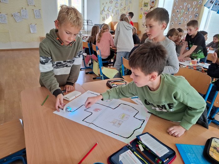 V rámci pracovních činností jsme se učili programovat malé mini roboty - Ozoboty pomocí barevných ozokódů. Zajímavá skupinová grafická práce, ve které jsme využili i výtvarné dovednosti a schopnosti komunikace ve skupině. Výsledkem této zábavné činnosti byly Ozobotí stezky, které vedly různými krajinami a po kterých jezdili svítící a blikající Ozoboti, kteří pomocí ozokódů předváděli své umění.