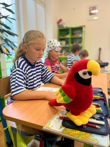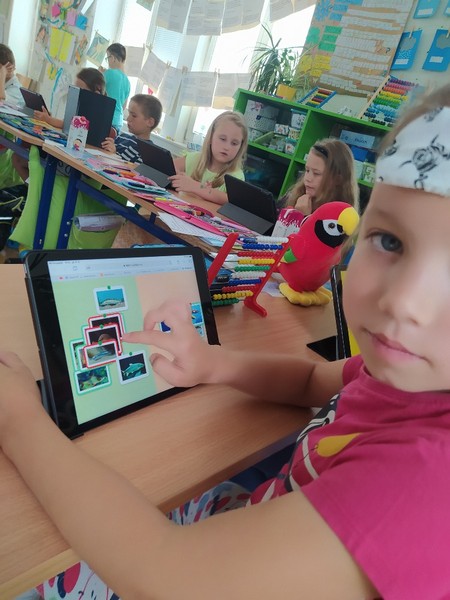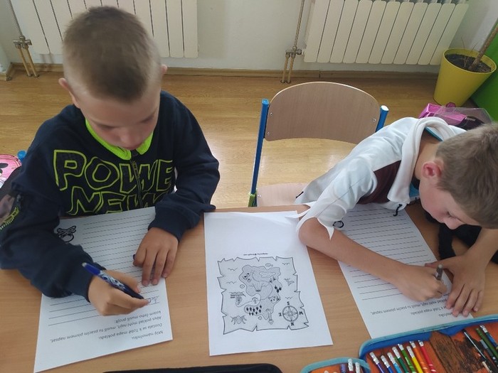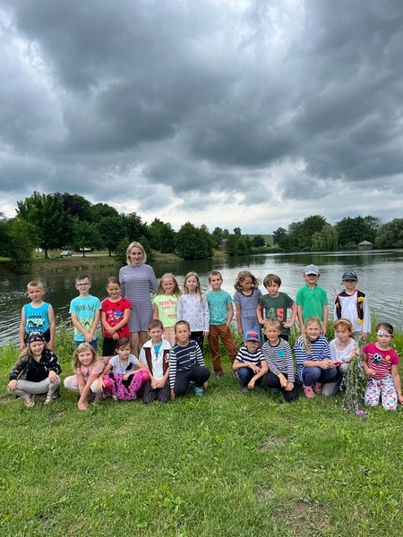 Piráti a námořníci se dnes sešli v první třídě, aby společně s Hupem a Hopem, dvěma opičáky z pohádky, prožili den na moři. Přečetli jsme si pohádku. K ní jsme měli připravený kvíz s otázkami k textu. S piráty jsme četli, psali, počítali i malovali... Museli jsme se prokousat mapou k pokladu, která byla plná nástrah. Našli jsme tajemný vzkaz v lahvi od ducha našich rybníků, který nám u rybníka přichystal odměnu za naši pohádkovou plavbu první třídou. Škola nás moc bavila.