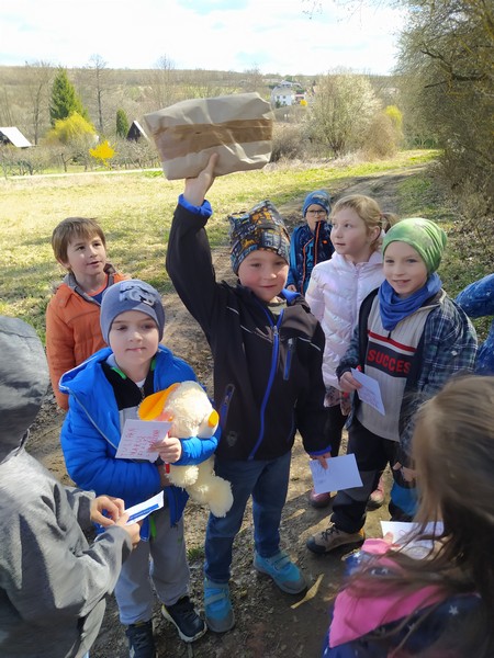 Přečetli jsme si krásnou pohádku o jarních motýlcích, jarní básničku od Jiřího Žáčka, počítali jetelíčky se zajíčky, plnili jarní úkoly na tabletech, prošli fáborkovou stezku, kde jsme poznávali přírodu podle úkolů na stanovištích a našli poklad.