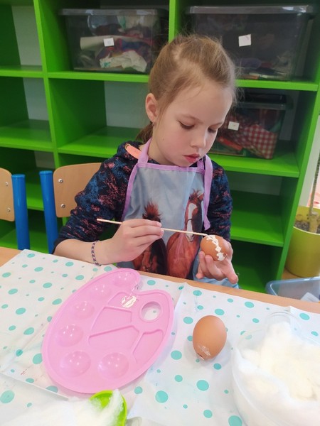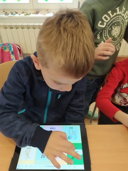 Nejdřív jsme ale museli naplnit aprílové poslání. Ráno do třídy přišel místo paní učitelky pan školník a místo čtení děti učil opravovat umývadlo. Nebojte, trvalo to jen chviličku. Pak už jsme na koberci v kruhu začali převyprávěním pohádky, každý jednu větu. Pohádku jsme si sami přečetli, poslechli i zhlédli v klasické staré animaci. Skládali jsme puzzle, počítali, psali, vyprávěli podle obrázkové osnovy ve dvojicích, zpívali, tancovali ptačí tanec, pracovali na Ipadech... Přešli jsme od drůbeže k ostatním zvířátkům a jejich mláďátkům. Nakonec jsme si krásně nabarvili slepičí vajíčka a těšíme se na Velikonoce.