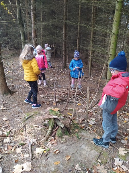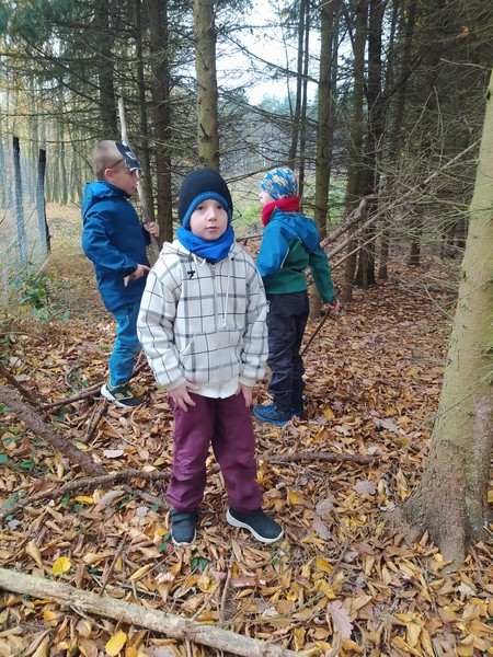 Vyrobili jsme si masky, zpívali, stavěli domky ze slámy, dřeva a cihel a zopakovali si tak geometrické tvary, počítali, četli a psali hravými aktivitami s prasátky i vlky a pak zašli do lesa na fáborkovou stezku tří prasátek, postavili jim domy a našli zasloužený poklad.