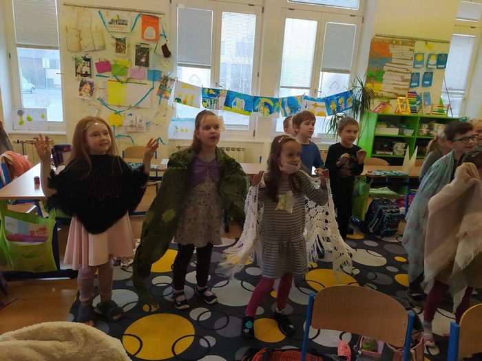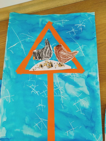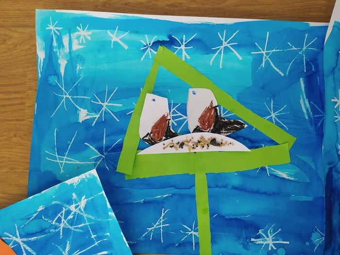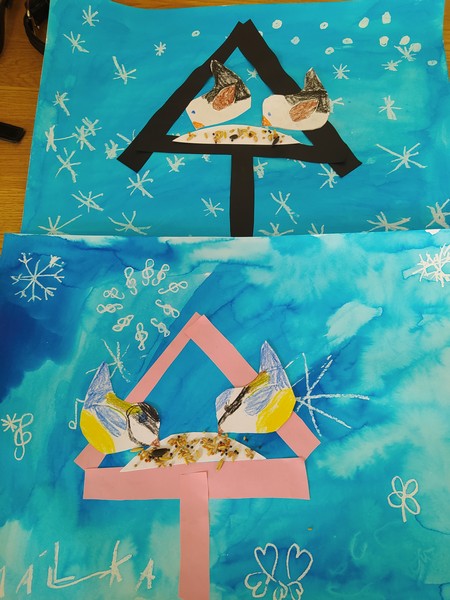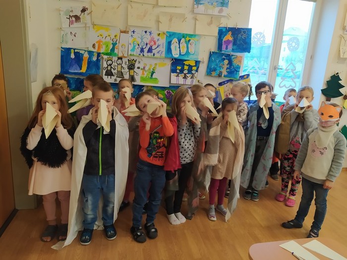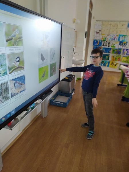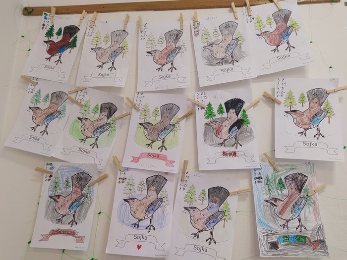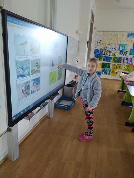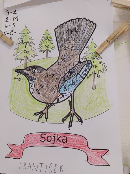 Z bajky O vráně a lišce jsme se poučili a zahráli ji jako divadlo, počítali se sojkou, četli obrázkové čtení, zpívali ptačí písničky, vyrobili si zobáky a krásné koláže s krmítky, naučili se poznávat ptáky na našem krmítku, zopakovali si, co do krmítka patří a co ne... A nakonec jsme v novém krmítku (děkujeme panu školníkovi) připravili zimní hostinu pro ptačí hladovce z okolí. A krmit budeme celou zimu, slibujeme!