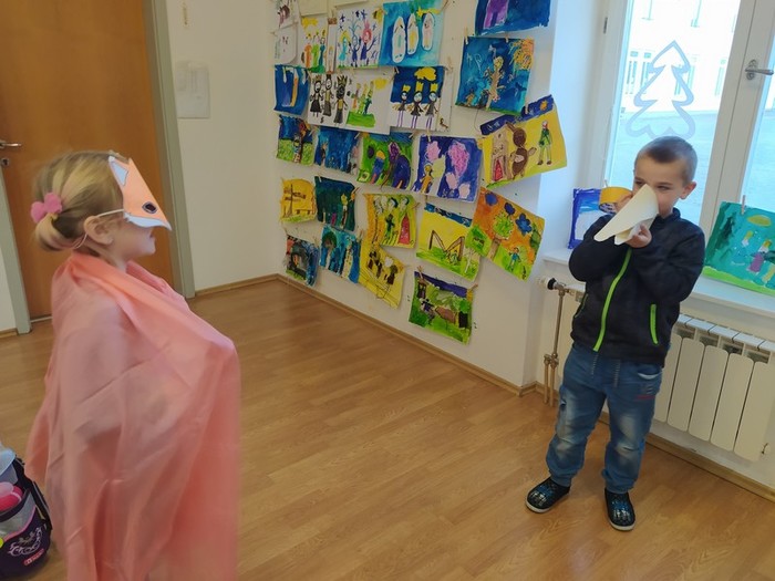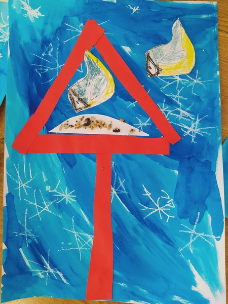 Z bajky O vráně a lišce jsme se poučili a zahráli ji jako divadlo, počítali se sojkou, četli obrázkové čtení, zpívali ptačí písničky, vyrobili si zobáky a krásné koláže s krmítky, naučili se poznávat ptáky na našem krmítku, zopakovali si, co do krmítka patří a co ne... A nakonec jsme v novém krmítku (děkujeme panu školníkovi) připravili zimní hostinu pro ptačí hladovce z okolí. A krmit budeme celou zimu, slibujeme!