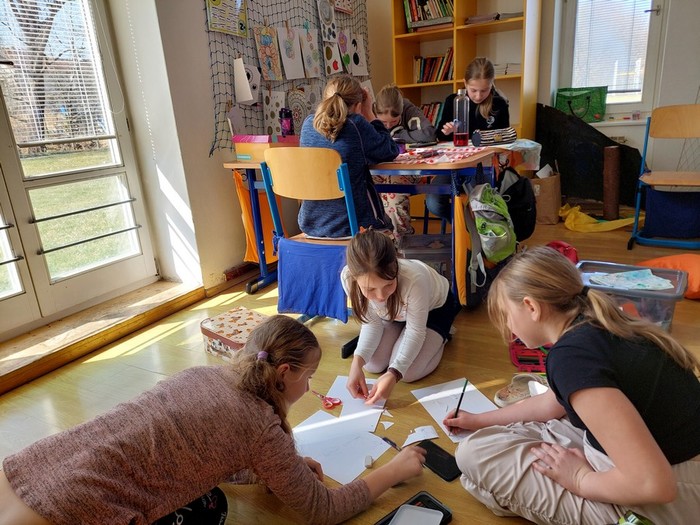 Pracovali také s Ipady, které využili k vyhledávání údajů o rychlosti dopravního prostředku či živočicha pohybujícího se vzduchem. Údaje nejprve odhadovali a pak porovnávali se skutečností. Mnohé z nich byly pro čtvrťáky opravdu překvapivé, o to více však zajímavé. Povídání o horkovzdušných balónech pak zakomponovali do výtvarného ztvárnění tohoto "dopravního prostředku".