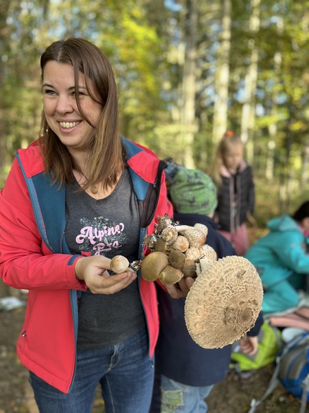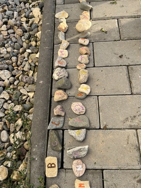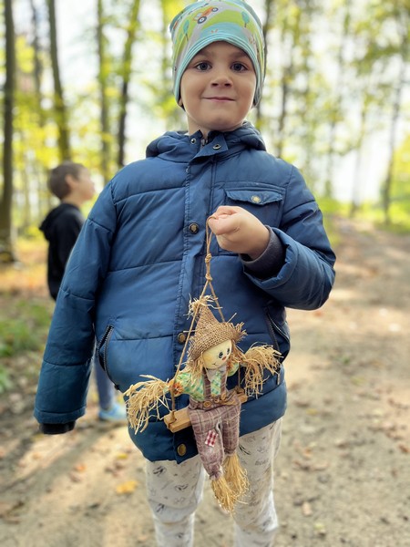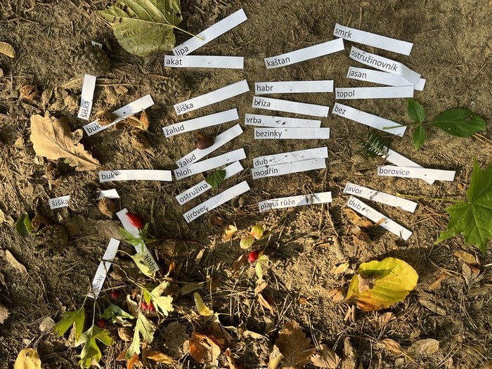 Dnešní pátek jsme se učili venku. Na kamínky jsme psali a řadili abecedu. Poznávali stromy, keře, plody, četli, přiřazovali, třídili, pracovali s psací abecedou, počítali s přírodninami, pracovali a soutěžili ve skupinách. Za odměnu jsme našli lesního skřítka.