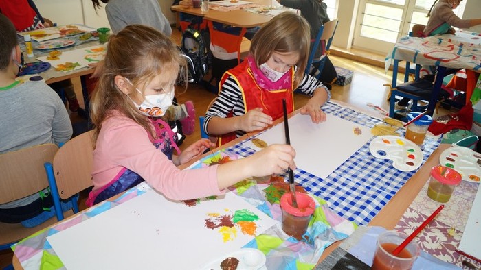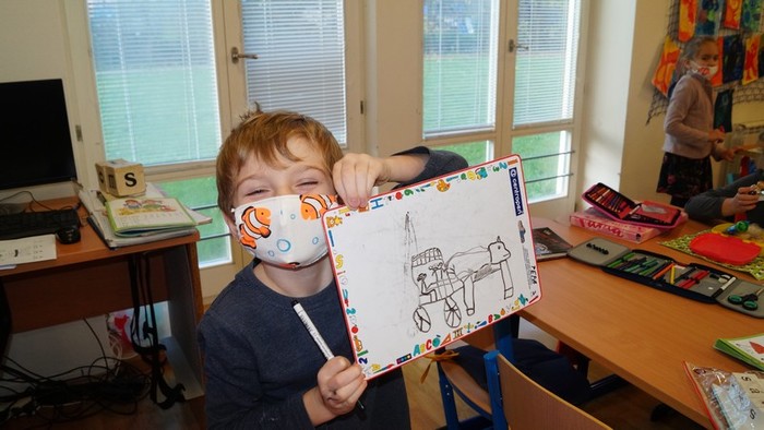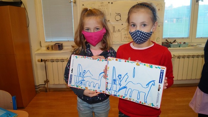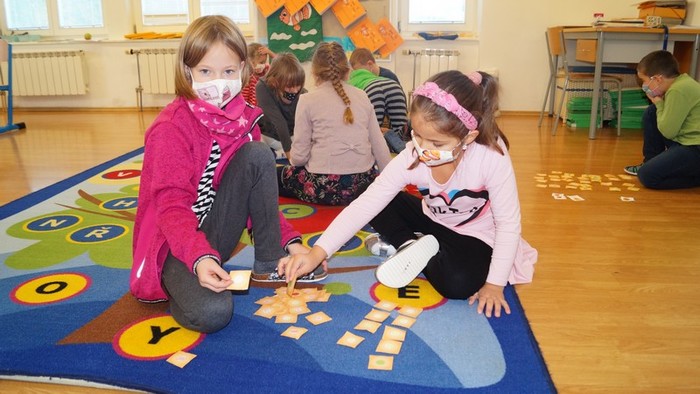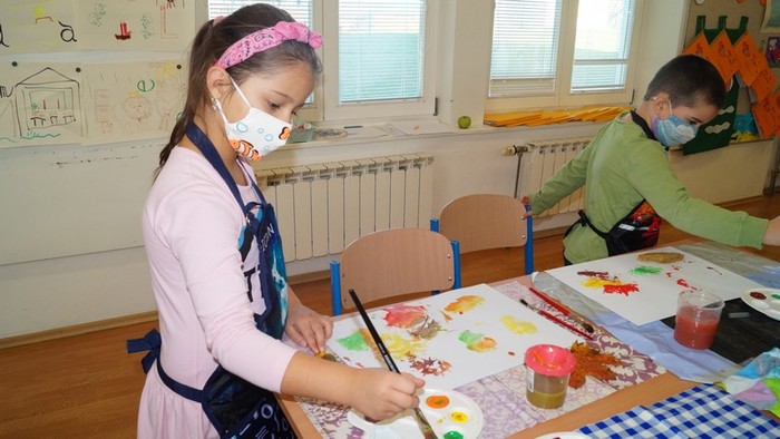 Ve školním dnu toho stihneme hodně. Písmenkové pohádky (tentokrát o písmenku I, i), pexeso zeleniny a ovoce, výtvarné podzimní tvoření a mnoho dalších činností.