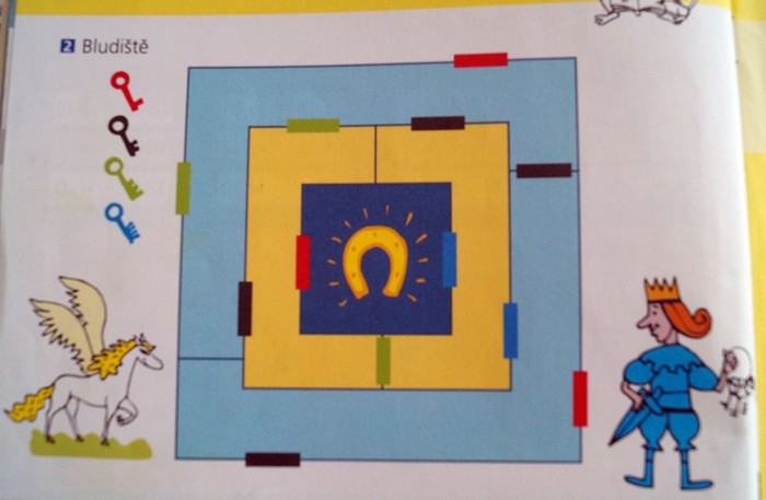 V matematice jsme řešili logický úkol, jak projít bludištěm a použít všechny klíče ve správném pořadí. A pak jsme vytvářeli vlastní bludiště.