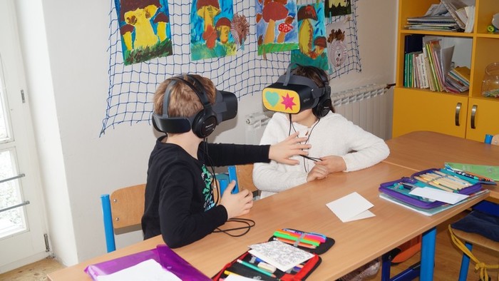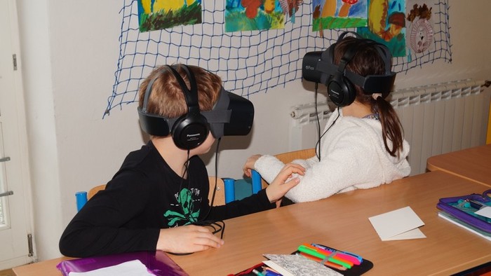 I my jsme si díky panu Daňkovi užili divadlo ve třídě. Čtvrťáci nám s instalací pomohli, a pak už bylo představení jen pro nás....