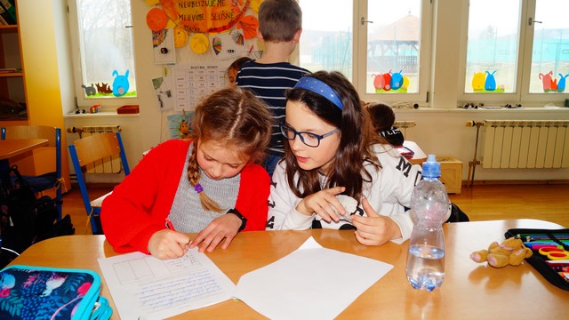 1. skupina: Šli jsme do lesa a tam byli ježečci a byla tam ježčí rodinka. A zajíčci si tam hopkali, včely opylovaly květy a dokonce tam rostly i sněženky a byly bílé. Moc se nám v přírodě líbilo.