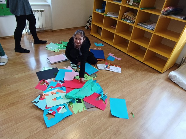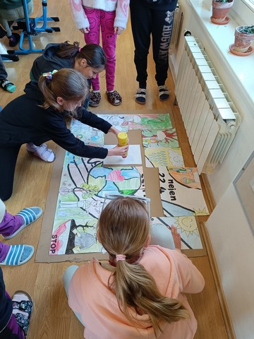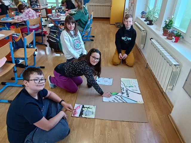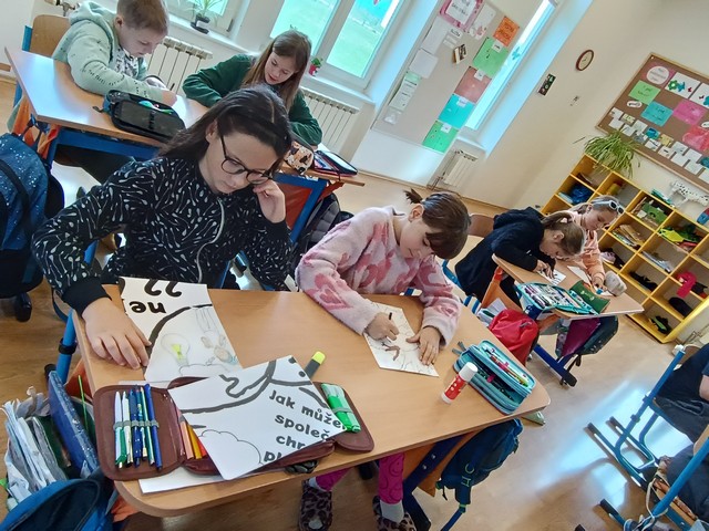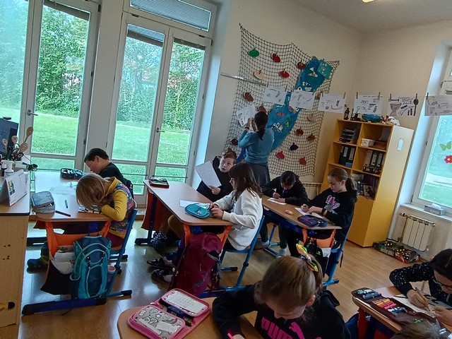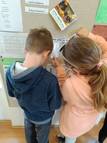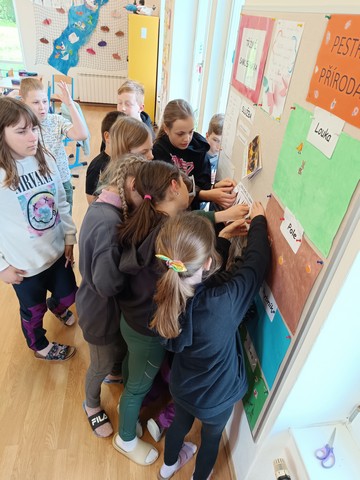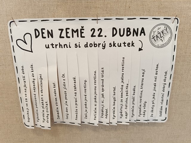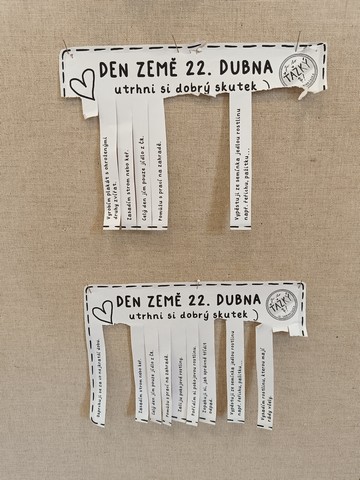 Pondělní Den Země čtvrťáci oslavili společnou prací jak ve škole, tak také venku. Nejdříve se s chutí pustili do tvorby kooperativního obrazu, který se skládal z více častí. Ty žáci nejdříve samostatně vybarvili a poté jako skupina dotvořili – seřadili a nalepili obrázky a dopsali konkrétní činnosti, kterými budou přírodě pomáhat. Posléze měli za úkol vybrat si dobrý skutek, kterým pomohou planetě Zemi – každý sám za sebe. Někdo se tedy např. zkusí sprchovat kratší dobu, aby ušetřil vodu, jiný zas místo cesty autem zvolí pěší chůzi. Čtvrťáci se do plnění dobrých skutků nadšeně pustili a již koncem týdne byla spousta z nich splněna. Zbytek Dne Země jsme strávili venku tradičním sběrem odpadků. Na nejlepší úlovky se můžete podívat ve fotogalerii:)
