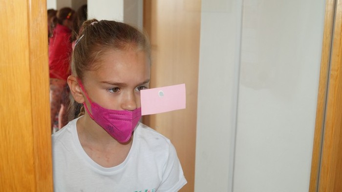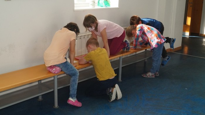 Nejdřív jsme luštili hádanky, které byly rozmístěné po hale.