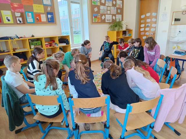 Ve čtvrtek 9. listopadu 2023 přišla za námi do třídy paní psycholožka Šárka Mošťková, se kterou jsme si povídali o naší třídě. Rozebírali jsme, co se nám líbí a co nás zase trápí. Také jsme dostali úkol vybrat si jeden z obrázků, který nám připomíná naši třídu.