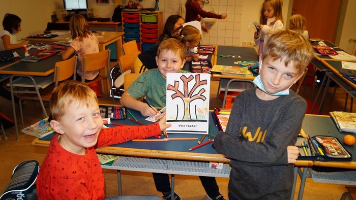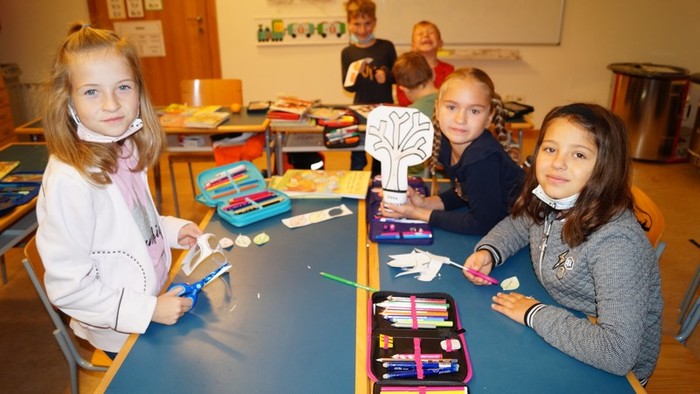 Druhy vět jsme procvičovali netradičně. Každá skupinka dostala jeden strom - jeden druh vět. Všichni pak připravili lístky s větami, které jsme správně roztřídili podle druhů a nalepili na ten správný strom.