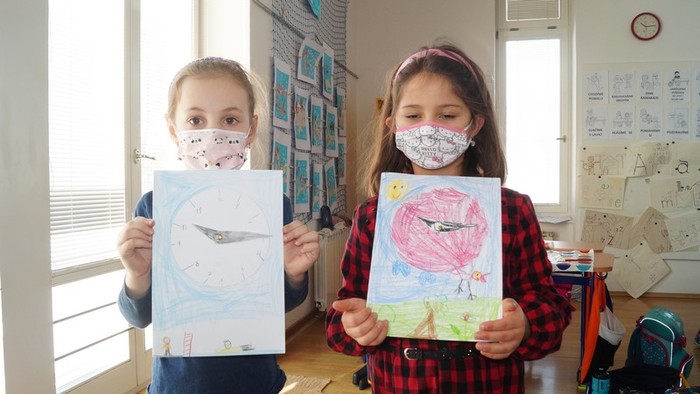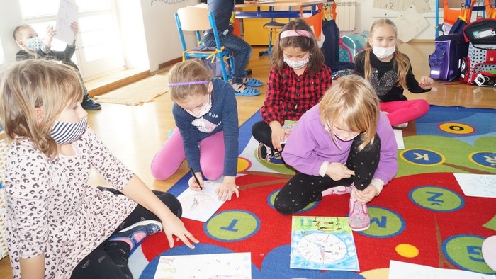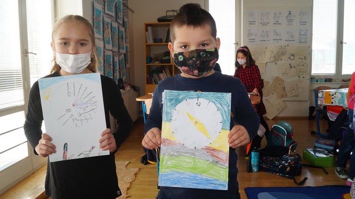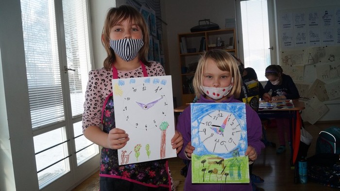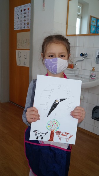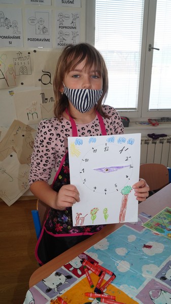 Učíme se poznávat hodiny. Ve výtvarné výchově jsme si hodiny vyrobili a s pohyblivými ručičkami potrénovali.