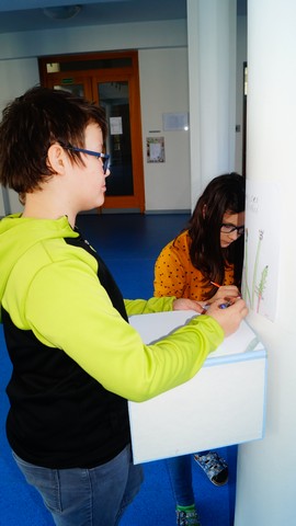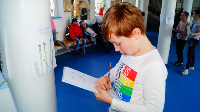 Také jsme využili výstavku kreseb jarních květin v hale školy, abychom si známé zopakovali a naučili se některé nové.