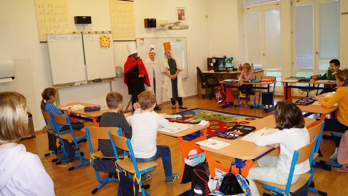 Tak nás dnes navštívili Tři králové - Kašpar, Melichar a černý Baltazar. Společně s páťáky zazpívali tříkrálovou koledu a požehnali nám třídu "svěcenou fixou" ☺: K+M+B 2022.