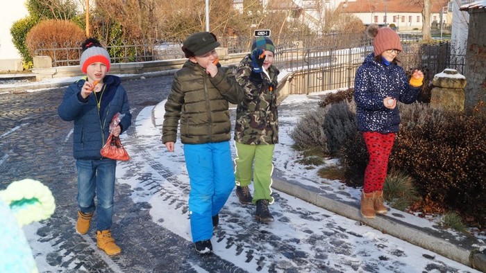 Měli jsme slíbeno, že až se ráno probudíme a venku bude bílo, bude to ten pravý den na krmení lesní zvěře. A tak, když se většina z nás v pondělí ráno probudila, podívala se z okna. A protože bylo bílo, nezapomněli jsme požádat rodiče o mrkev nebo jablíčko.