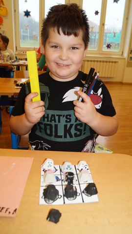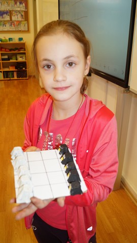 Vyrobili jsme si hru "piškvorky" z recyklovaného materiálu. Použili jsme proložky od vajec, ze kterých jsme vyrobili figurky, a karton z krabice na herní desku. A pak už to bylo jen o zručnosti.
