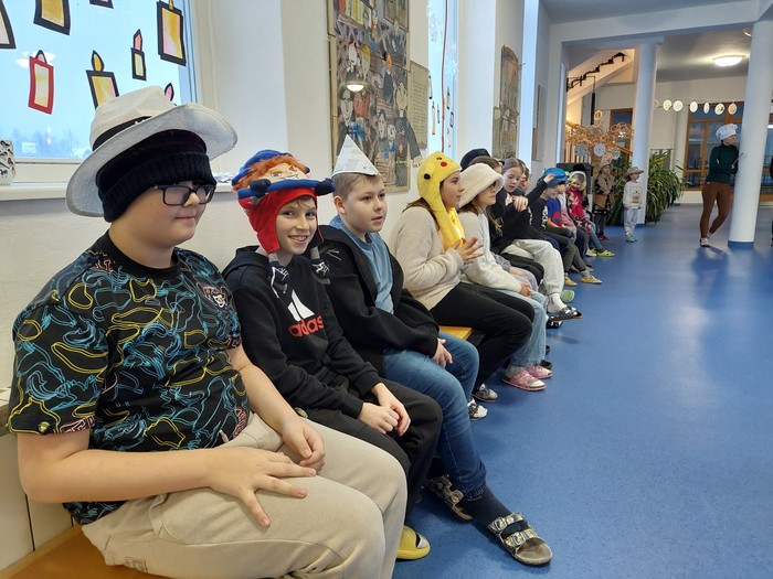 Naši nejmladší žáci oslavili Mezinárodní den pokrývek hlavy vskutku originálním způsobem. Do školy dorazili v neobyčejných čepicích, kloboucích, helmách a dalších kreativních pokrývkách hlavy, které si přinesli z domova.