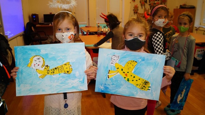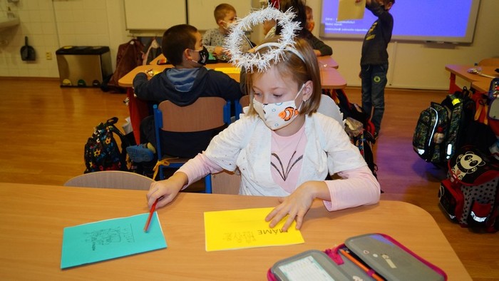 Od Štěpána jsme všichni dostali Mikulášský perníček, andělé nám přinesli speciální sešity, Mikulášská družina nám pomohla překonat strach, namalovali jsme moc krásné anděly a nakonec jsme zažili "peklo" v jídelně.