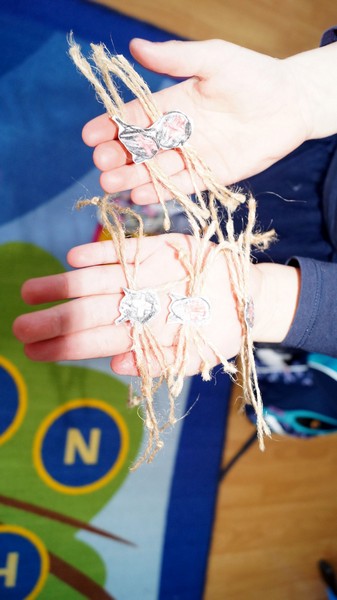 Vznikli tak, že jsme provázek museli přestříhnout přesně v polovině. Pak každou půlku zase na polovinu. Čtyři stejné provázky jsme uprostřed zavázali na suk a tak získali osm pavoučích nožiček. Ti šikovní na konci každé nožičky uvázali uzlík. Nakonec jsme z papíru vystřihli a nakreslili tělo a to nalepili na suk.