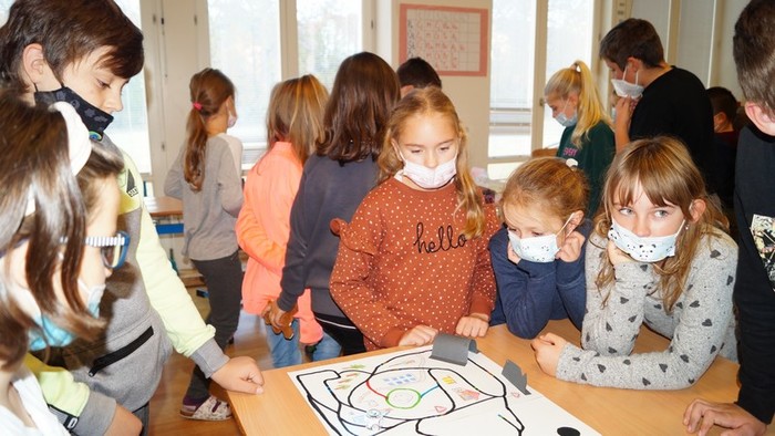 Páťáci nám ukázali svoje dráhy na ozoboty. Ti reagují na povely pomocí barevných čar. A tak jsme viděli, jak ozoboti jezdí v čarovné knihovně, na diskotéce, po lesní cestě, ve městě i na Tour de France.