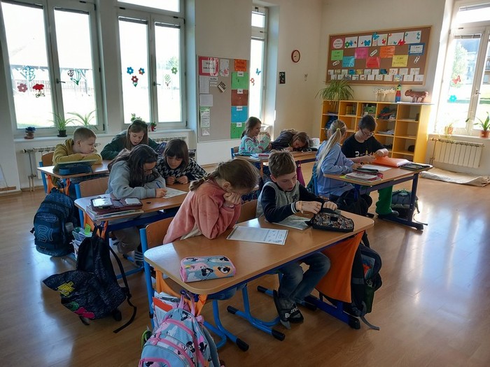 V dnešní hodině čtení četli žáci ve dvojicích v rámci tzv. párového čtení. Společně s partnerem si žáci četli, přečtené úryvky si navzájem postupně převyprávěli a pokusili se je i stručně shrnout. Zároveň se zamýšleli jak nad textem, tak také v rámci sebehodnocení nad tím, jak se jim úkoly dařilo plnit a jak se jim pracovalo ve dvojicích. Ohlasy byly velmi kladné a na otázku, zda si zase někdy chtějí zkusit podobnou aktivitu, se třídou ozvalo jednoznačné a hlasité "Anooo!" :-)
