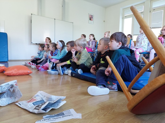 Páťáci opět předvedli scénické čtení Dobrodružství pavoučka Čendy – tentokrát pro děti z druhé a třetí třídy a také pro předškoláky z mateřské školy. Původně bylo představení připraveno pro prvňáčky k seznámení s písmenkem Č, ale díky nadšeným ohlasům jsme hráli i pro další diváky.